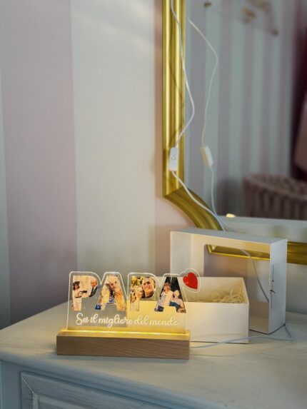 Cornice in legno a forma di cuore (misura circa 13 cm) con incisi pezzi di puzzle. Al centro presenta un foro dove è possibile inserire la foto. Il prezzo è compreso di cavalletto di sostegno.