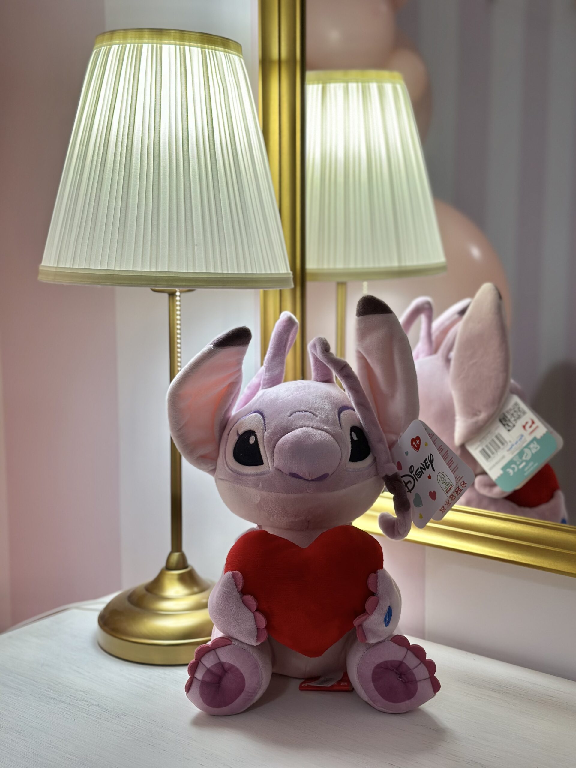 Peluche Angel con cuoricino rosso, misura circa 30 cm di altezza, con pulsante sulla mano per farlo suonare.