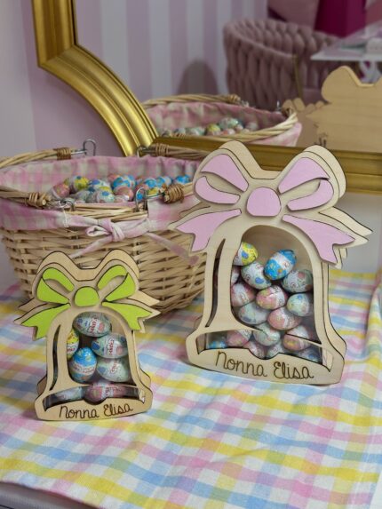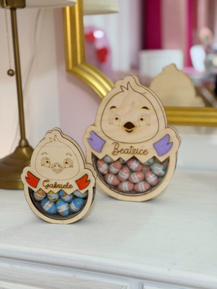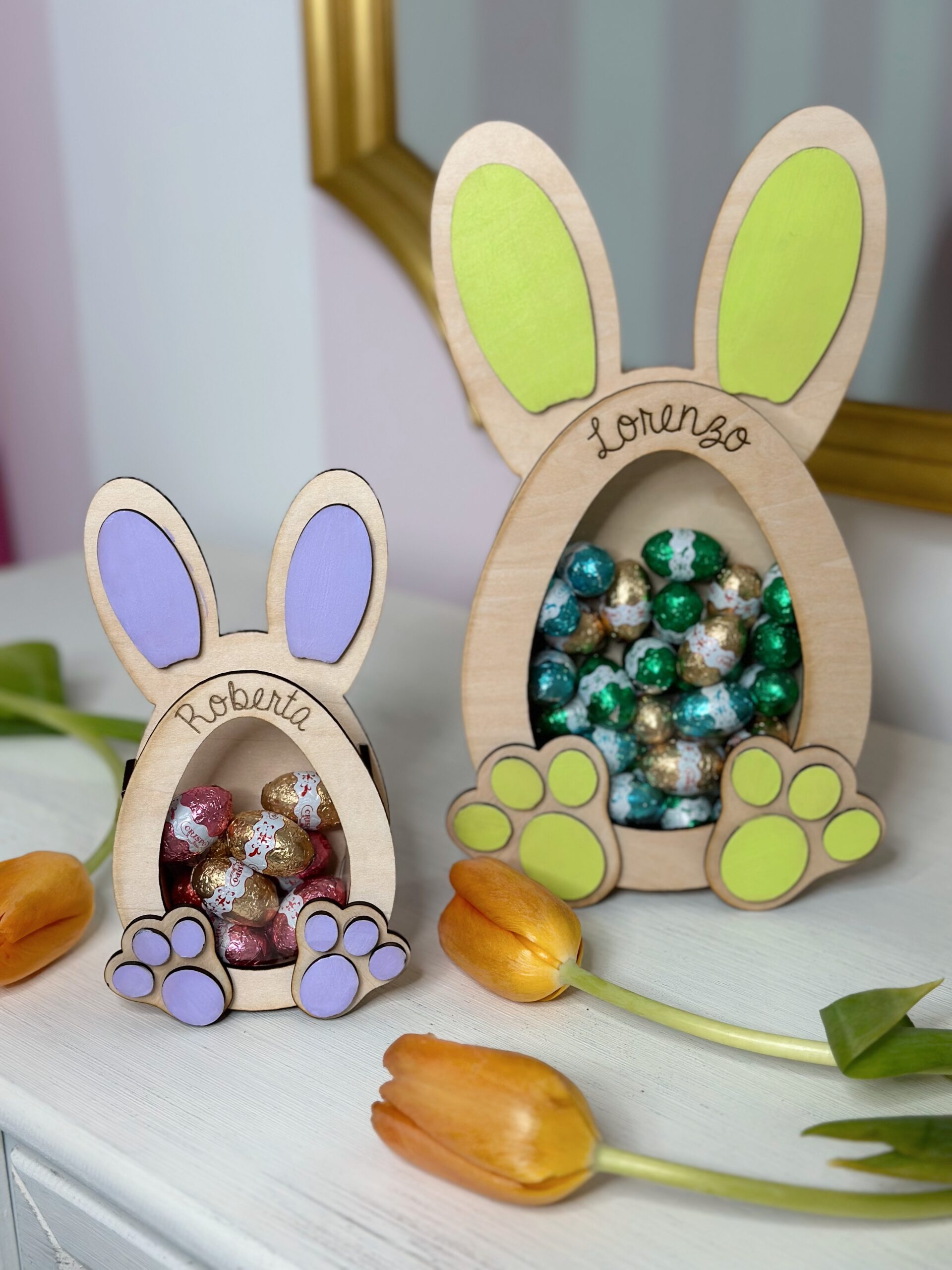 Portaovetti in legno personalizzato e fatto completamente a mano. Sono disponibili due misure e nove varianti colore, con possibilità di aggiungere il nome (specificarlo nelle note in fase di pagamento)