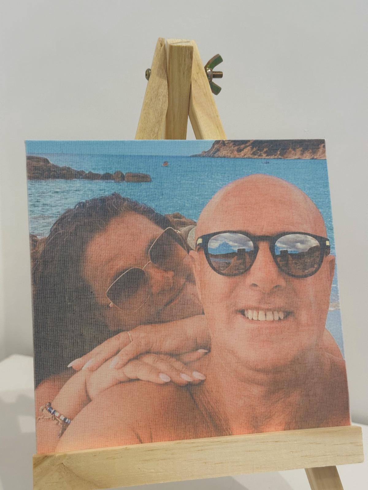 Tela 16×16 con foto personalizzata, effetto vintage, compreso cavalletto. Dopo l’ordine inviare la foto su whatsapp al 3890280228.